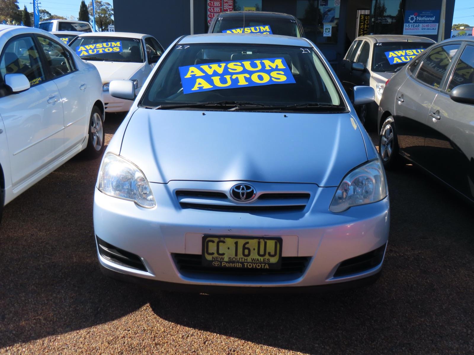 TOYOTA COROLLA HATCH AUTO AIR STEER DRIVES GREAT TOYOTA RELIABILTY WONT LAST WELCOME TO AWSUM AUTOS I HAVE BEEN A MOTOR DEALER SINCE 2001 AND IN THE MOTOR INDUSTRY SINCE 1988 I HAVE BEEN IN THE CAR CITY COMPLEX SINCE 2001 AND HAVE ENJOYED SERVING CUSTOMERS AND PROVIDE A POSITIVE OUTLOOK TO THE PUBLIC FOR YOU TO FEEL COMFORTABLE IN PURCHASING A VEHICLE FROM ME..I ALSO OFFER EXTENDED WARRANTYS AND LOOK FORWARD TO MEETING YOU IN PERSON PH 0415 989 121 NOW TO ENQUIRE ABOUT MY VEHICLES IN STOCK I AM LOCATED IN YARD 32 NO PUSHY SALESPEOPLE HERE NO SPRUIKING NO HARRASSING YOU ON THE STREET JUST A FRIENDLY ATMOSPHERE OWNER OPERATED FAMILY BUSINESS